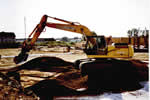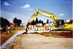 Erste Belastungsproben mußte das Geogitter nach der Verlegung und Auftragung des Frostschutzes sofort bestehen.