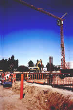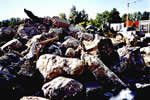 Die ehemalige Kiesgrube muß ihre "Schätze" wieder hergeben: Altlasten. Diese Betonbrocken sind die Reste des ehemaligen Wohnungsplattenbau im Stadtteil "Lankow" und warten jetzt auf ihre Entsorgung. Sie waren u.a. ein Grund zur aufwändigen Spezialtiefgründung durch 9 bis 13 Meter tiefe Pfähle.
