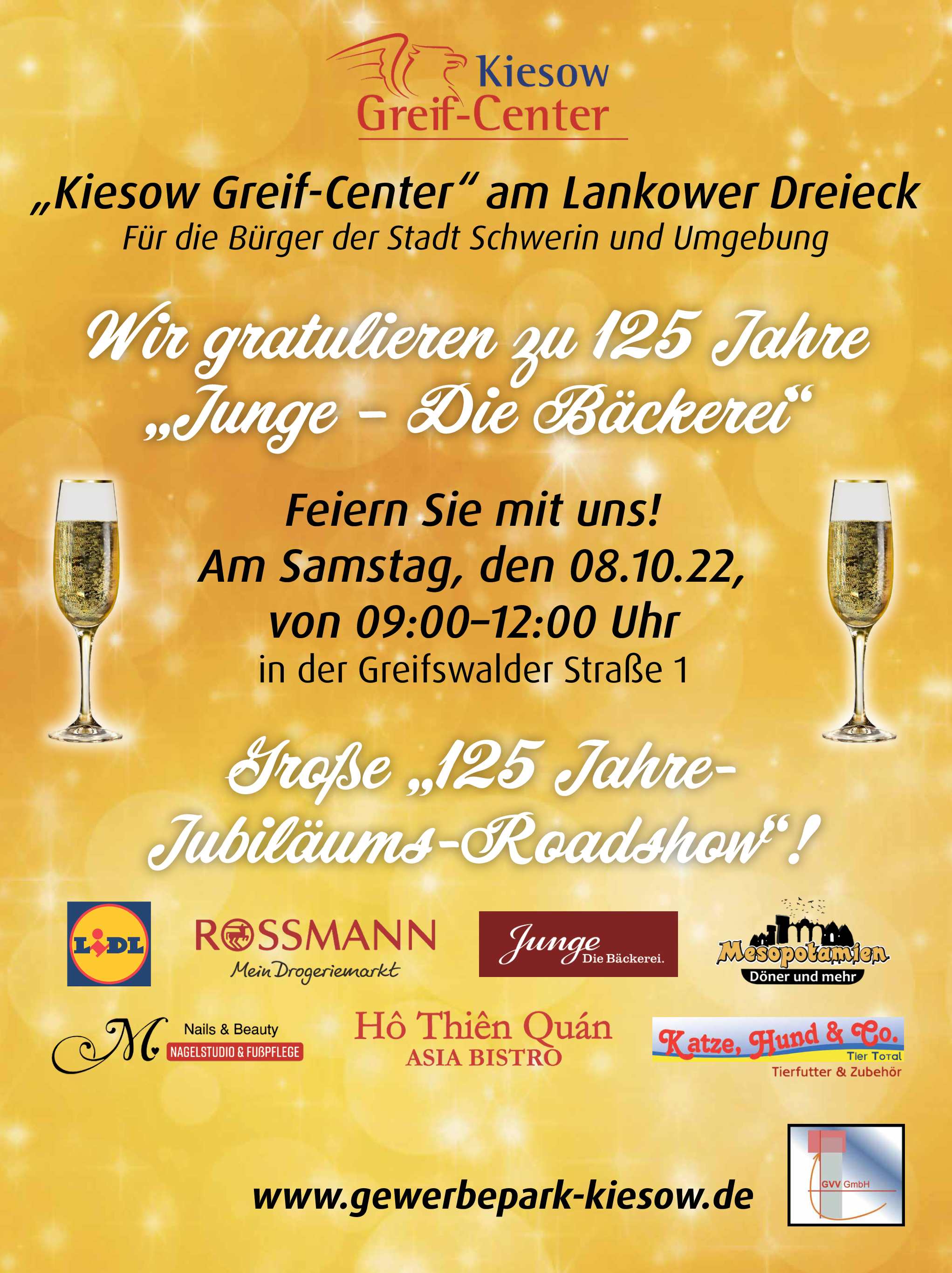 08.10.2022 - Kiesow Greif – Center“ am Lankower Dreieck gratuliert zu 125 Jahre „Junge - Die Bäckerei“